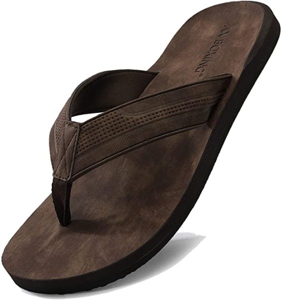 Leather sandals are a MUST to capture Smee’s pirate ship-friendly look, so be sure to add a pair of dark brown slides or flip flops, like these.
