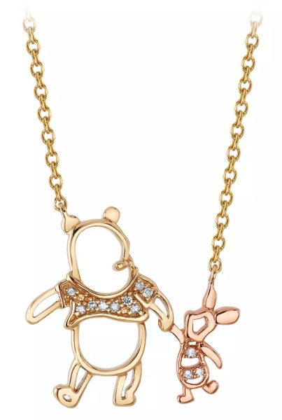 Featuring Pooh in gold tone and Piglet in rose gold tone, this 16-inch necklace features diamond accents and is priced at $74.99.