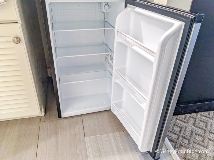 Not to start any drama, but we’ve seen a LOT of Disney World mini fridges in our time, and this one is definitely the biggest we’ve ever seen. (Even compared to some of the most expensive hotels in Disney World!👀)