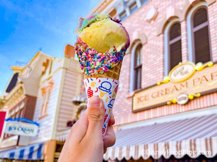 So, while this treat may not be a standout for us, it’s a great option if you like cherry, banana, or pistachio (or all three combined) and are looking for something to help you cool off on a warm park day. Plus, it’s in a super convenient location if you’re hoping to grab something sweet and stake out a viewing spot for the Main Street Electrical Parade on none other than Main Street, U.S.A.! Of course, we’ve been trying all the new snacks that have made their way to Disneyland for the nighttime spectacular celebration too so be sure to stay tuned to DFB for more!