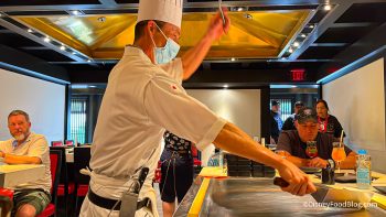 2022 WDW EPCOT Japan Pavilion Teppan Edo Review Teppanyaki Chef on Grill (3) By Quincy Stanford Leave a Comment