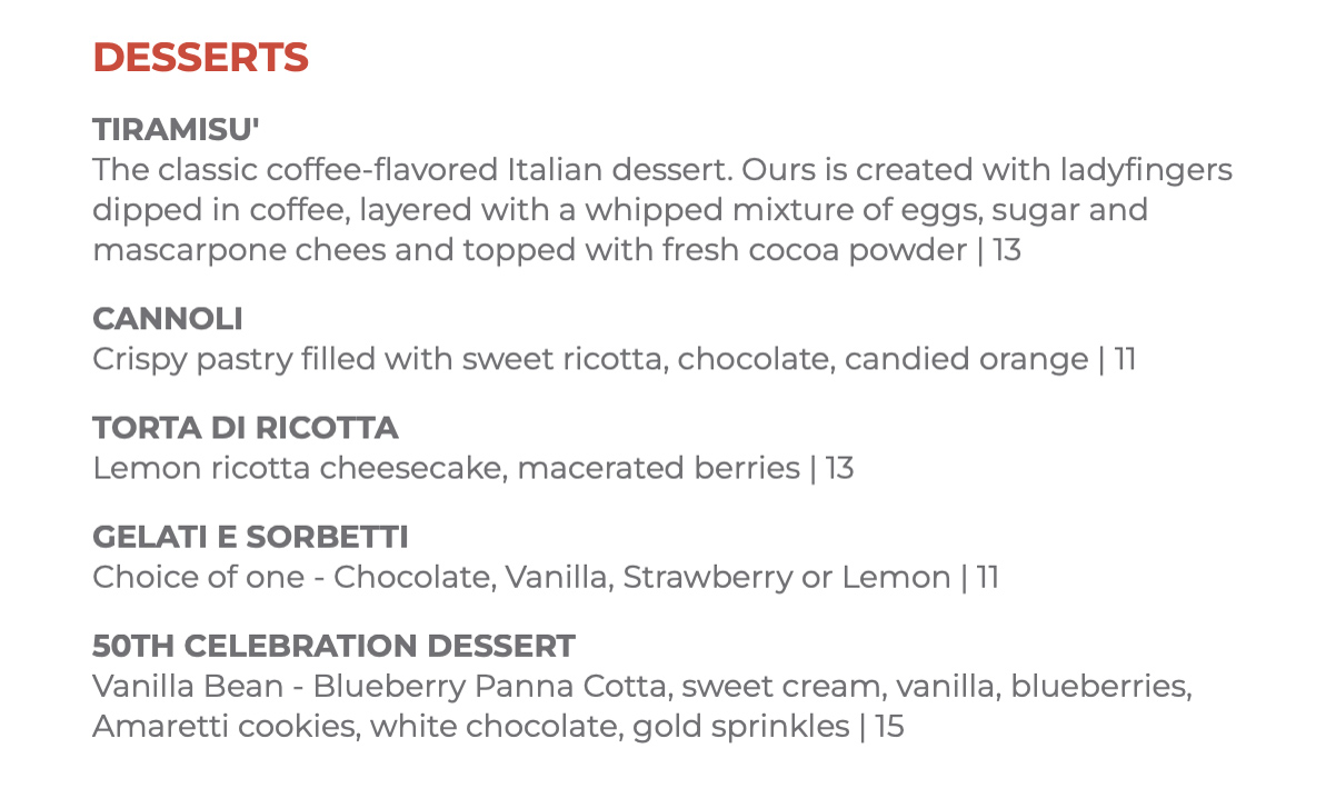 For dessert, we ordered the Torta di Ricotta al Limone for $13. This is lemon ricotta cheesecake infused with macerated berries.