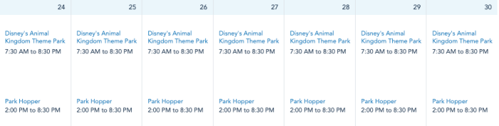 Guests can enjoy Animal Kingdom every day next week from 7:30AM to 8:30PM.