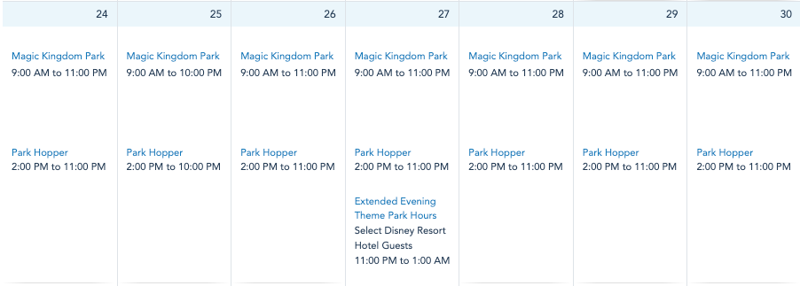 Magic Kingdom Park Hours
