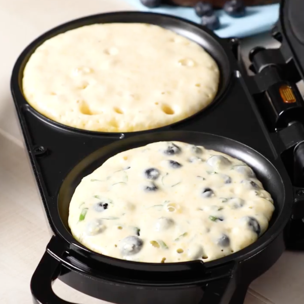 Split your batter into two separate bowls. Mix your blueberries and basil into one bowl of batter, and leave the other how it is. Let your Toy Story Pancake Maker preheat for 4-5 minutes, and then you’re ready to cook! When the edges of your pancakes start to bubble, it’s time to flip them. Your pancakes should be done cooking and ready to eat in 2-3 minutes.