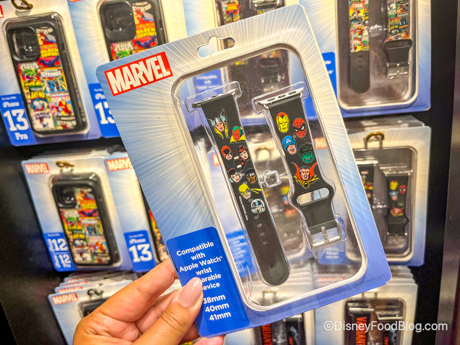 A new superhero item has flown into Disney Springs — the Marvel Apple Watch Band!