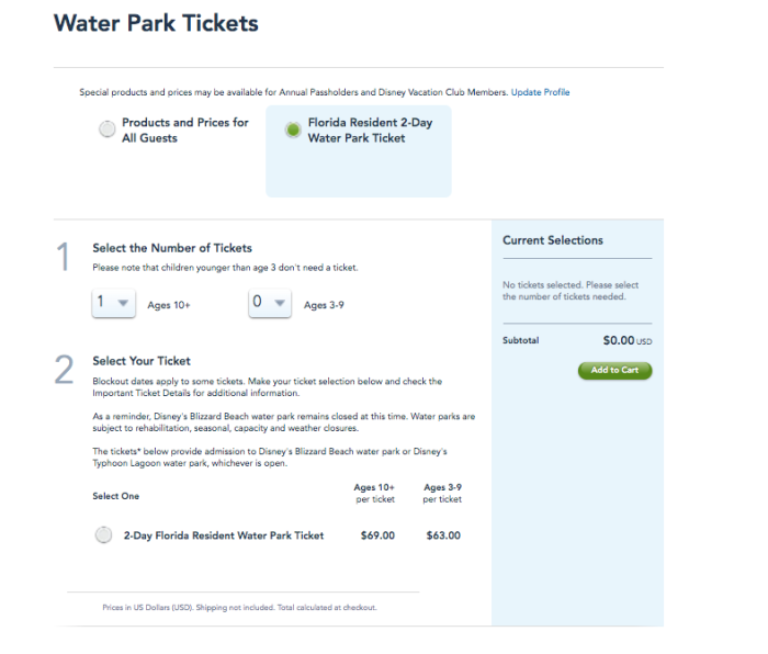 Note that there are blockout dates from May 27th through May 30th, 2022. Proof of Florida residency is required to book these tickets.