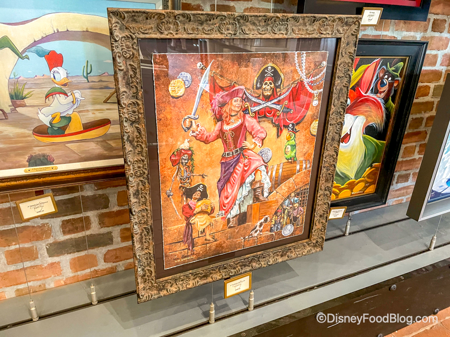 There is some incredible new art at EPCOT’s fine art shop! First up is the Pirate’s Life for Me Print, which is available matted for $39.99, or you can get it framed for $399.99!
