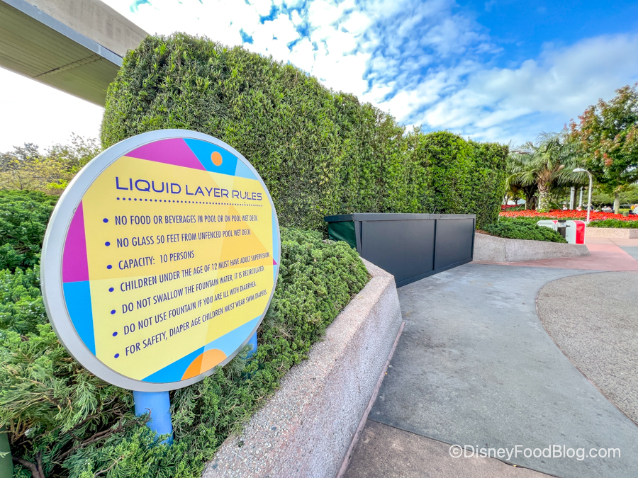 The water misters and benches have been removed over at the Liquid Layers splash zone area!