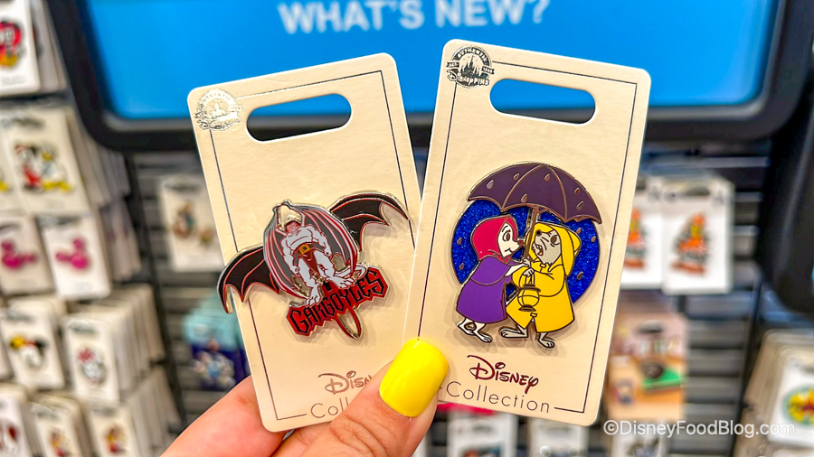 There were two new pins when we strolled through Pin Traders recently — a Gargoyles Pin and a Rescuers Pin!