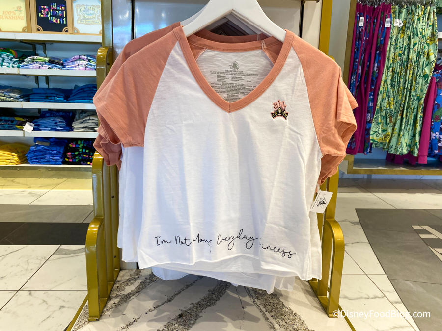Finally, at Legends of Hollywood, we saw this shirt that says “I’m Not Your Everyday Princess” on the bottom with Princess Tiana’s crown embroidered on it, as well.
