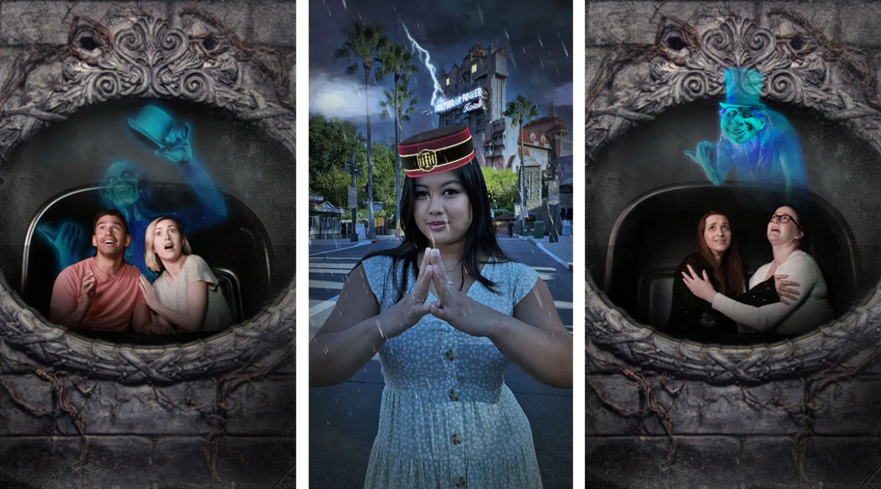 Disney recommends you go far enough down Sunset Boulevard to hear the shrieks from the Tower of Terror. (Did you know those shrieks are pre-recorded? People on the ride aren’t actually that loud, even if you may feel like it when you’re screaming while dropping multiple stories!) This new PhotoPass lens is only available to guests through the My Disney Experience app who have purchased Genie+ for that day.