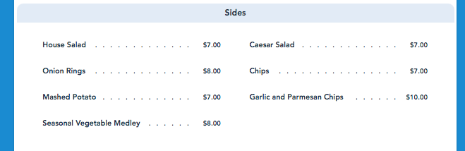 Both the shrimp and scallops could be good picks if you love those types of seafood and aren’t looking for tons of seasonings on the seafood items themselves. The portion sizes are also pretty decent, making them fairly good picks. BUT they aren’t exactly cheap. The shrimp isn’t terrible at $18, but that scallop forest comes in at $26 for just an APPETIZER, so that’s something to be mentally prepared to see on the bill later.