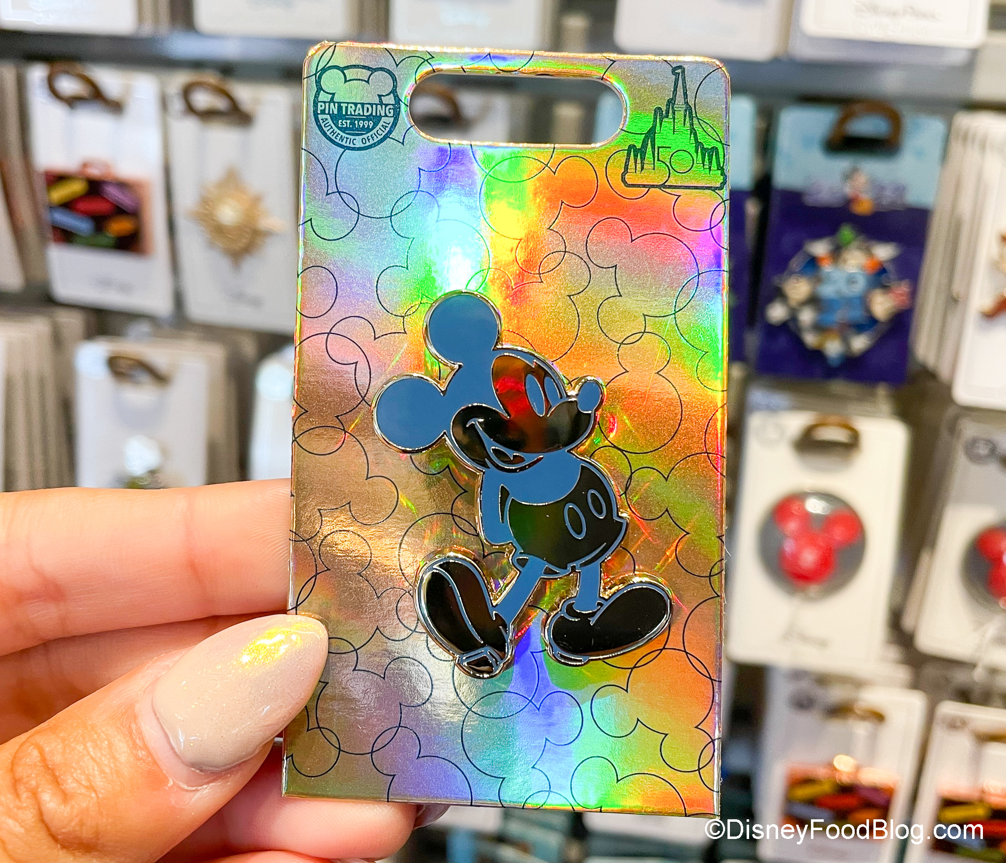 The Earidescent Mickey Pin is back in stock for $14.99.