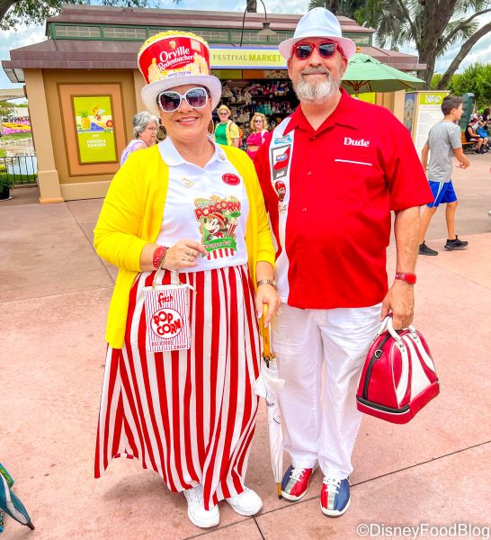 Plus, we spotted two other guests dressed up as EPCOT’s unofficial mascots — Figment and Orange Bird.