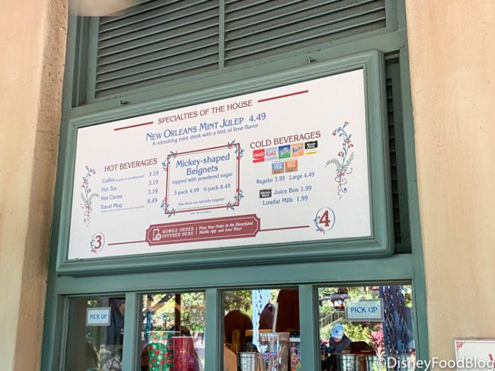 If you’re not familiar, the Mint Julep Bar is located at New Orleans Square in Disneyland Park. This location is famous for its interesting Beignet and Mint Julep flavors, as well as its very long lines. But, with new Mickey Beignets on the line, we were willing to wait!