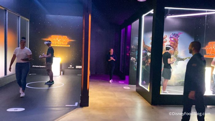 When we went to participate in this experience, we had to first fill out and sign a waiver in order to continue. Once the waiver was signed, we headed in. When we got inside, we put on the Meta Quest 2 headset, and the experience began. This game is based on Batuu, the planet brought to life in Star Wars: Galaxy’s Edge.