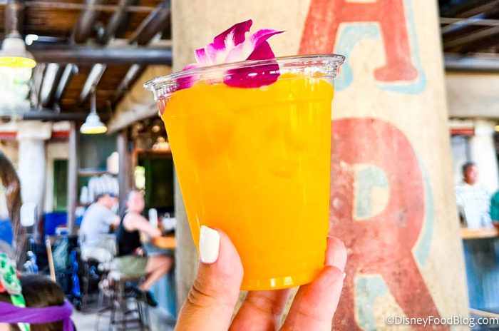 It’s garnished with a flower, so the decoration and the bright color of the drink make this a great drink for pics. If you don’t like mango, this might not be the drink for you. Although the mango flavor isn’t really in your face, you can still tell it’s there. And if you’re looking for a more alcohol-forward drink, you’d probably be better off with a beer or margarita from this bar. But if you like fruity drinks and are looking for a great way to cool down during a hot day, we think this drink will 100% fit the bill!