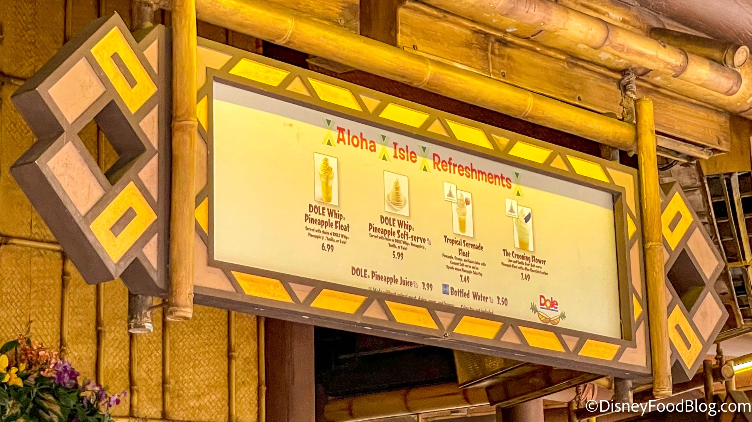 We noticed that the Pineapple Upside Down Cake is back on the online Aloha Isle menu, but not on the in-person menu. We made our way to Aloha Isle to order it but a Cast Member told us it wasn’t available at this time.