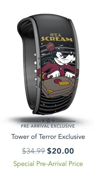 There’s also this new Tower of Terror MagicBand that features Goofy as a bellhop! It also has the words “It’s a Scream” on it. This MagicBand is available for $20 for resort guests and passholders.