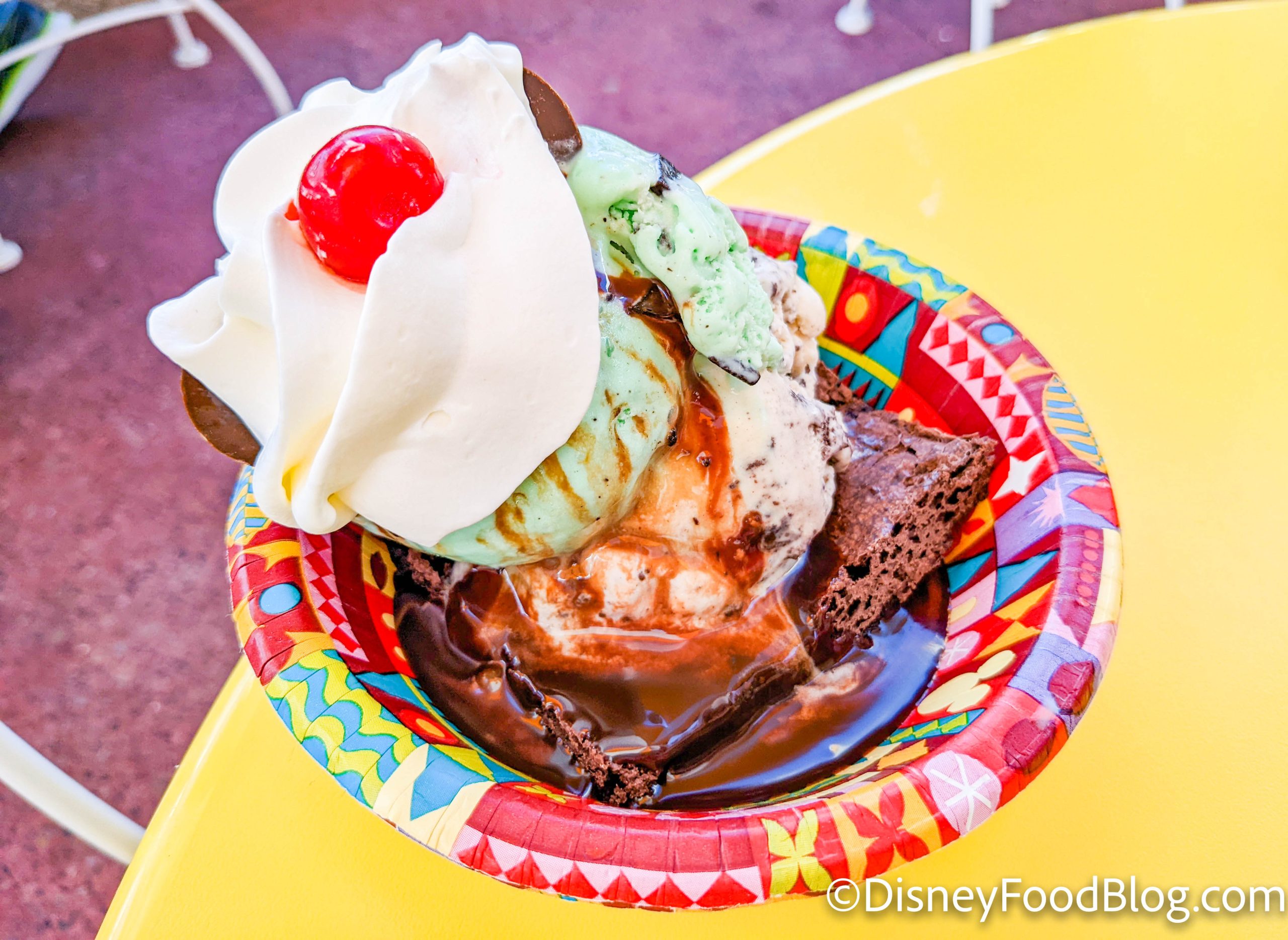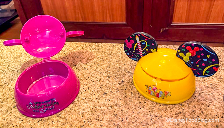 You can get it served in either a Birthday Mickey Ear Hat Bowl or an Unbirthday Mickey Ear Hat Bowl — but we opted for the Unbirthday Bowl!