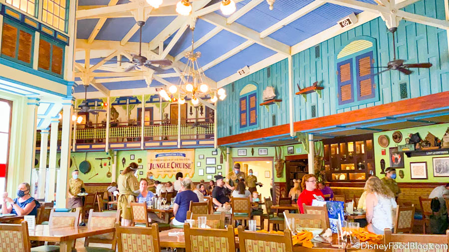 Back over in Magic Kingdom is a Table Service restaurant that you should definitely snag a lunch reservation for if you can (although sometimes the walk-up list is available!) — Skipper Canteen! Located in Adventureland, this restaurant is a continuation of the Jungle Cruise theme, and your waiters are actually Skippers!