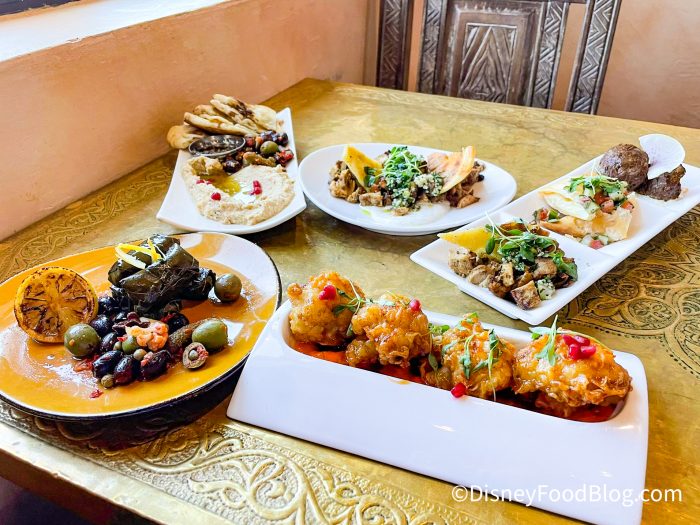 Spice Road Table is super underrated, so we’re here to hype it up! It’s located over in EPCOT’s Morocco pavilion and it’s on the water, making it a lunch spot with beautiful views of the World Showcase Lagoon. It doesn’t take reservations, so it’s first come, first serve, but it’s not as busy as some of the other spots in EPCOT!
