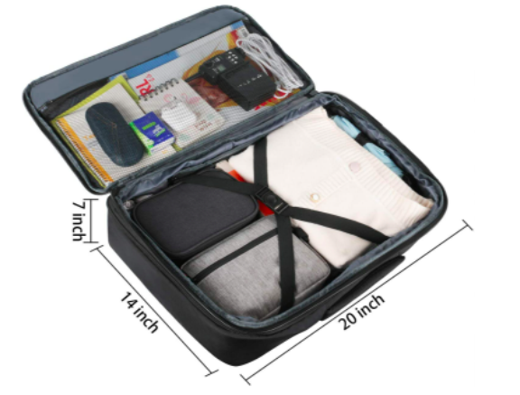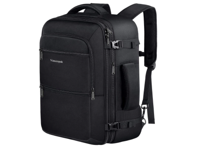 This pack expands outward to fit more items, or it can be contracted to a smaller size. It measures 20 inches by 14 inches, which means it’ll qualify as a carryon and not need to be checked.