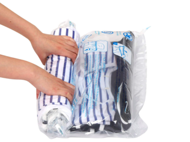 Just put your clothes inside and roll them up tight — no vacuum seal necessary.