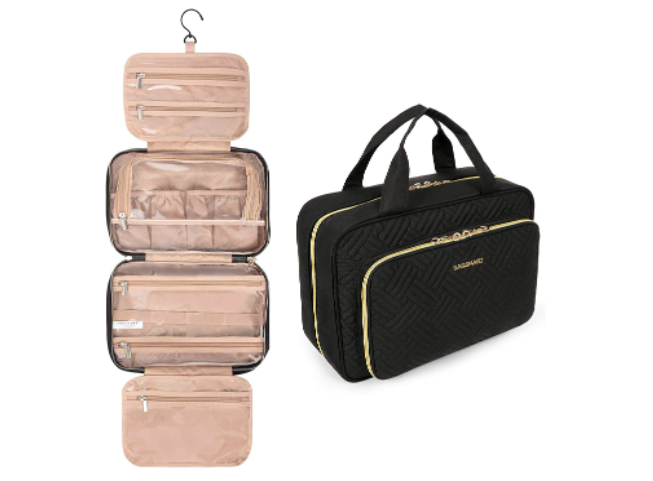 Another hot commodity in hotel rooms (besides outlets) is counter space in the bathroom. You can free up some room with a hanging toiletry bag. Just pack the bag and zip it up, and then once you arrive you can simply unzip and hang it up!