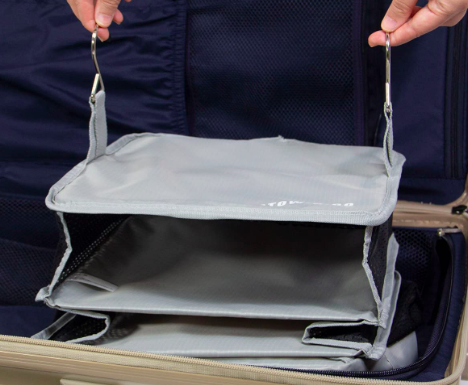 This way, you can keep your clothes organized both in your suitcase and at the hotel. You won’t even have to unpack. Just hang the cube up and you are are good to go!