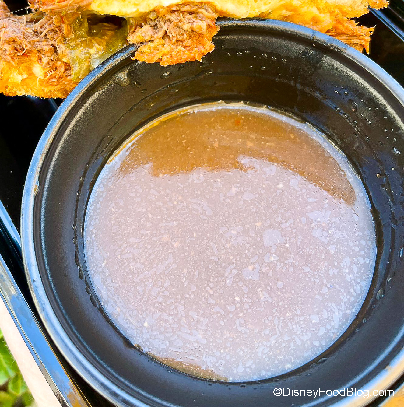 We’re going to get straight to the point here — you need to RUN to Jolly Holiday for this sandwich NOW! It easily ranks among one of the best that we’ve had in the parks thanks to the tender and flavorful meat that’s packed in there. Plus, the onions and cilantro don’t overpower the dish — they add just a bit of additional flavor. And, that salsa verde…YUM!