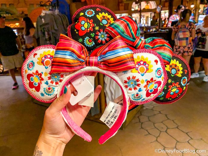 And, the bow has a bunch of colors as well! It actually matches the other new merchandise we’ve seen in the Mexico Pavilion recently.