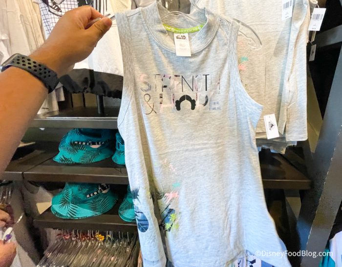 Last week, the Disney parks celebrated May the 4th with limited edition food offerings and of course, merchandise! We spotted some new merchandise items at Star Wars Galactic Outpost in Disney Springs, too! First up, we saw this Rebel Leader spirit jersey for $74.99. It matches perfectly with the Rebel Leader bucket hat we’ve seen in Hollywood Studios and in Disneyland!