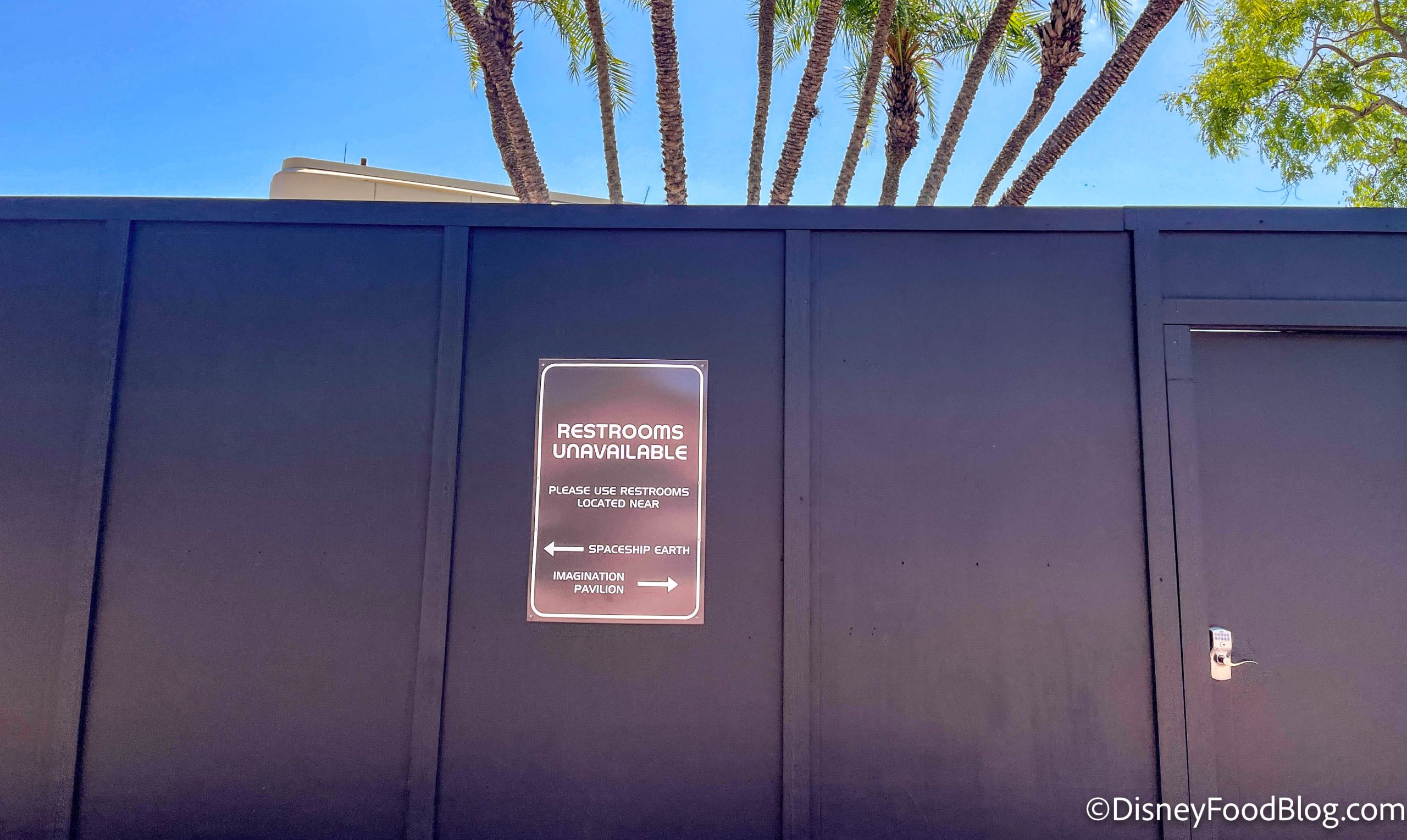 Now let’s move on to construction! Across from the Land pavilion, the bathrooms were blocked off by a construction wall.
