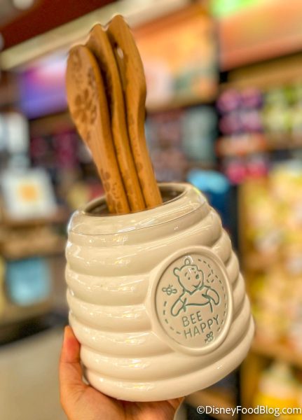This Bee Happy Hive Holder with Wooden Spoons was $34.99.