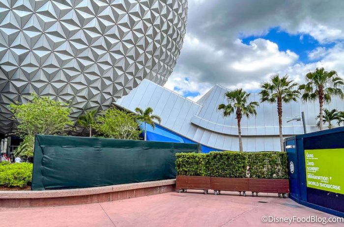 And finally, construction walls were placed on the right side of Spaceship Earth.