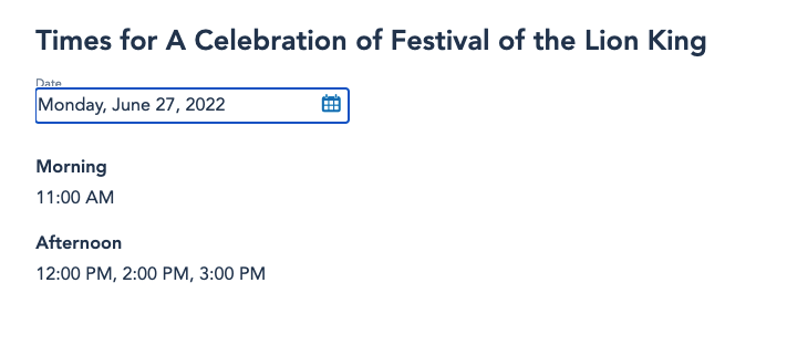 …but according to Disney World’s calendar, showtimes will be cut even further beginning June 27th, 2022. Showtimes will reduce to 4 times a day taking place at 11AM, 12PM, 2PM, and 3PM daily.