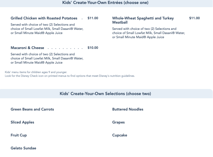 … and your typical kids’ menu!