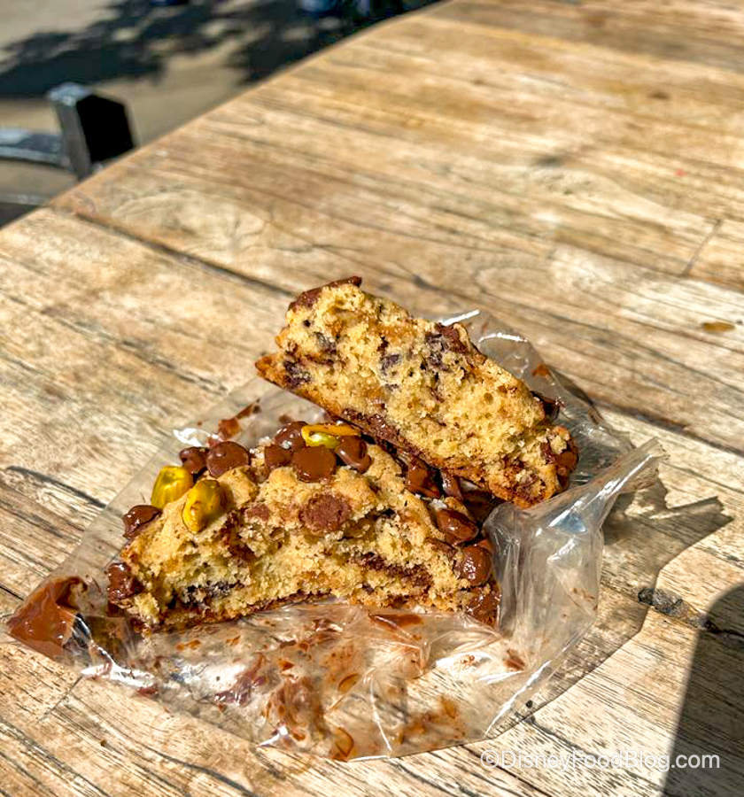 At first glance, it reminded us of the cookies they make over at Gideon’s Bakehouse in Disney Springs. The texture wasn’t like a Gideon’s cookie as this one was more “baked” and less soft than what we’ve come to expect from Gideon’s.