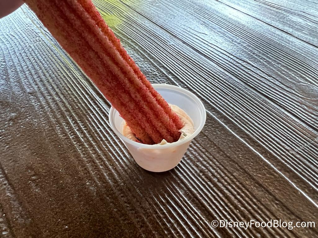We enjoyed the vanilla dipping sauce that came with it and it made the churro better. It was still a good and fresh Disneyland churro, but we aren’t sure that we’d get this one again. There are PLENTY of other churro options at Disneyland!