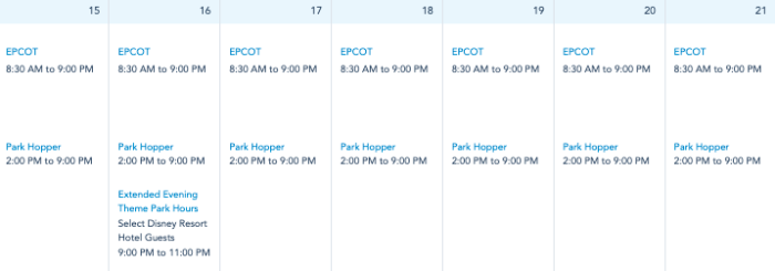 EPCOT Hours