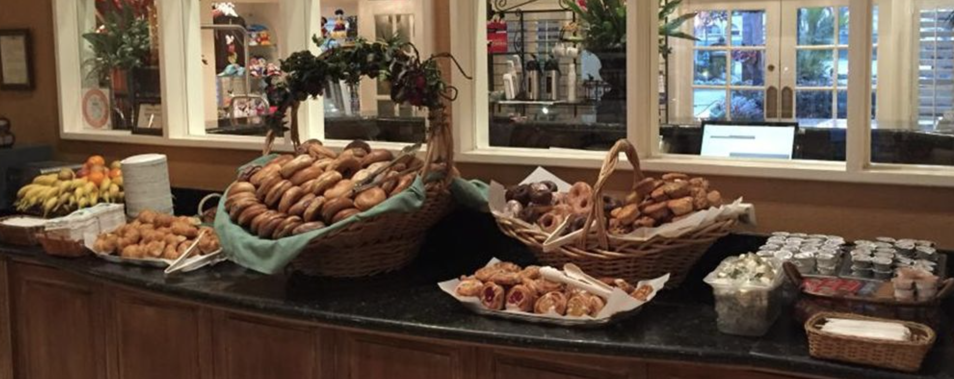 You’re probably not looking at a small bill if you dine in a Disneyland hotel restaurant, and there’s typically no free breakfast, either. But on the other hand, lots of nearby hotels actually do offer free continental breakfasts.
