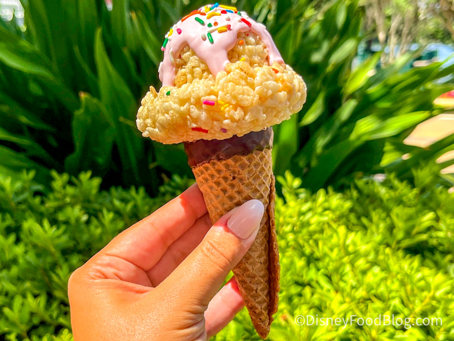 - Mickey Waffle Sundae: vanilla soft-serve, hot fudge, cookie crumbles, and white chocolate crisp pearls (NEW) — Find our REVIEW here!
