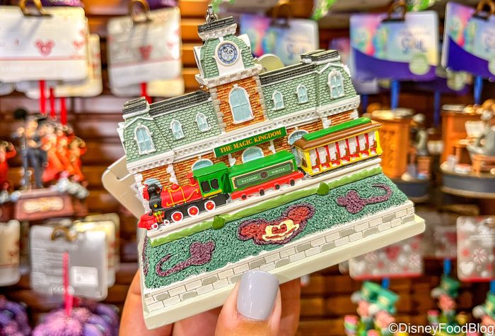 We saw the building attraction ornaments restock, as well as the addition of the Train Station Ornament for $29.99! It has the iconic view of the train on one side…