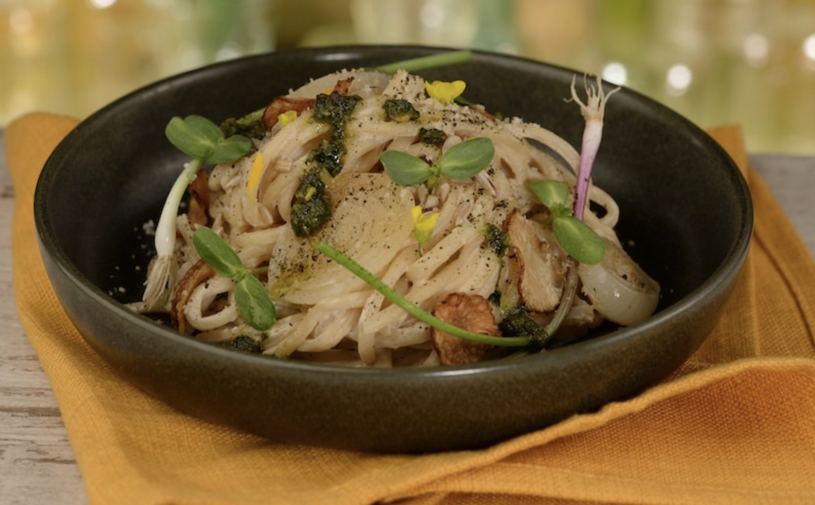 As for entrées, check out the new House-made Bucatini Cacio e Pepe, which is a fresh take on spring flavors with sunflower, allium, crispy sunchokes, charred green onions, toasted onions, and a sunflower seed-ramp pistou along with house-made bucatini topped with a luxurious cashew cream sauce.