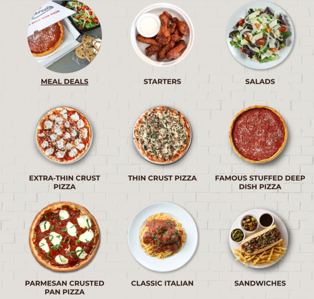 The Giordano’s menu includes a whole bunch of Italian-style items including salads, garlic Parmesan fries, garlic bread, thin crust pizza, STUFFED(!) deep dish pizza, sandwiches, and classic Italian dishes.