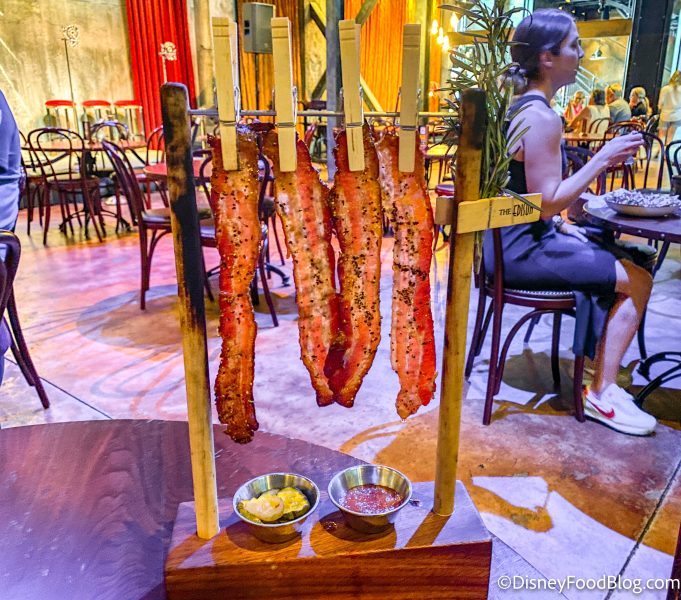 This is a signature item at The Edison and one we’ve had in the past. As we’ve mentioned before, it’s EXPENSIVE for just 4 strips of bacon, but in the past when we’ve had this it has MELTED in our mouths and been worth the cost (despite how badly we wanted to hate it because of that high price). So how did it hold up this time?