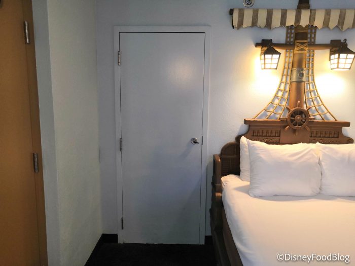 For some, the lighting and outlets are something to be aware of when booking! Some rooms, for instance, are on the darker side, which might bother someone in your party. We noticed this is true with the lighting in the Pirate Rooms at Disney’s Caribbean Beach Resort. Plus, you may want to make sure that there is separate bedside lighting from the main lighting in case one person wants to read while another sleeps.