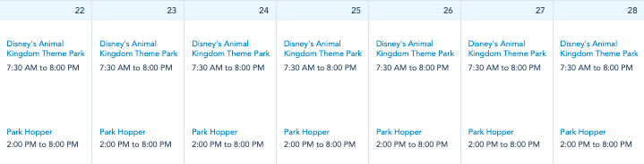Disney’s Animal Kingdom will be open from 7:30AM until 8PM every day next week!